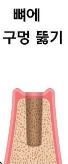 마취후 잇몸속에 임플란트 지지대를 심어줍니다. 그 다음 몇 차례 방문하여 소독및 체크를 받습니다.