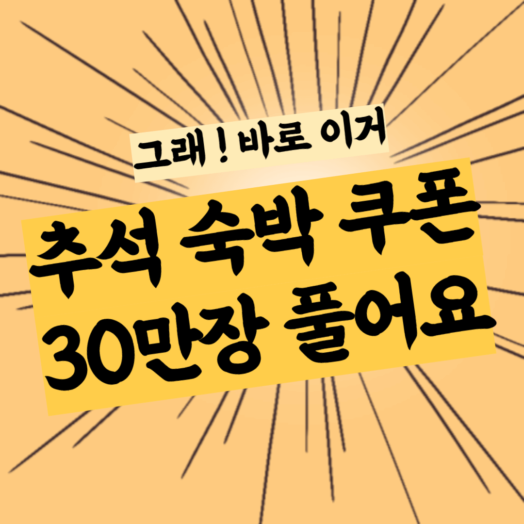 무려 일주일 이상의 황금연휴를 알차게 보낼 수 있는 꿀 정보 입니다. 10월 2일이 임시공휴일이 되면서 황금추석연휴를 즐길 수 있게 되었습니다. 9월27일 부터 10월 15일 까지 숙박 쿠폰 할인권 30만장을 배포합니다. 1인 1매 선착순 제공이기 때문에 발빠른 예약이 필수 입니다.